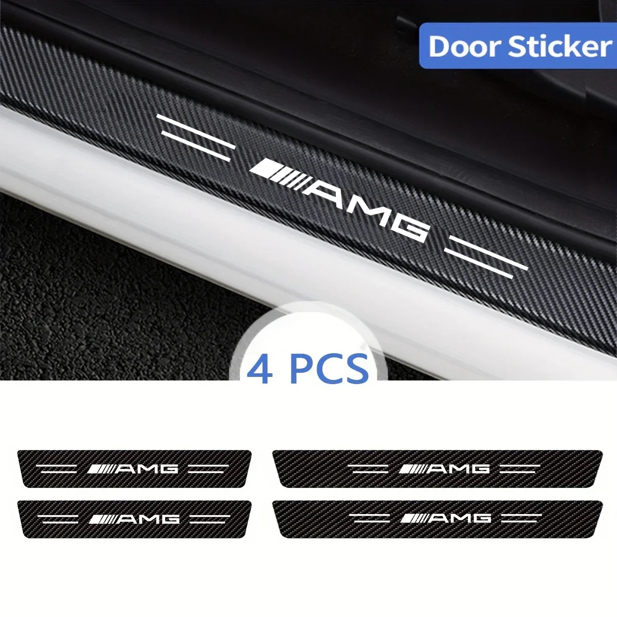 4pcs Car Door Plate Protective Stickers Carbon FiberLeather Car Sticker For Mercedes benz AMG W204 W212 W211 W124 W210 GLC CLA