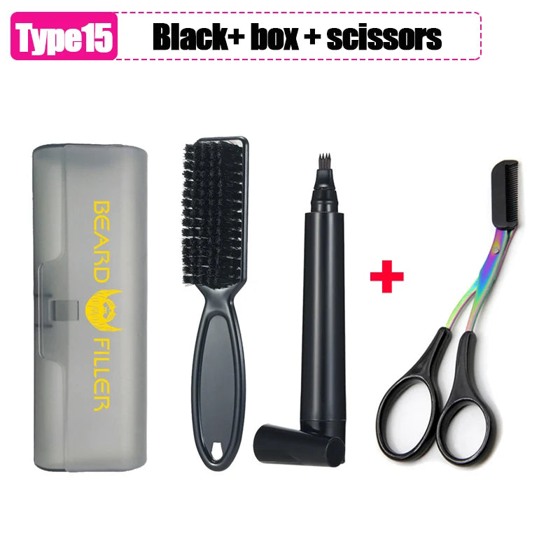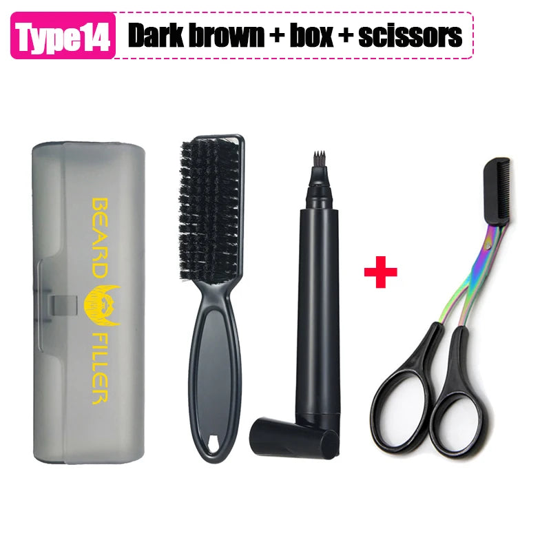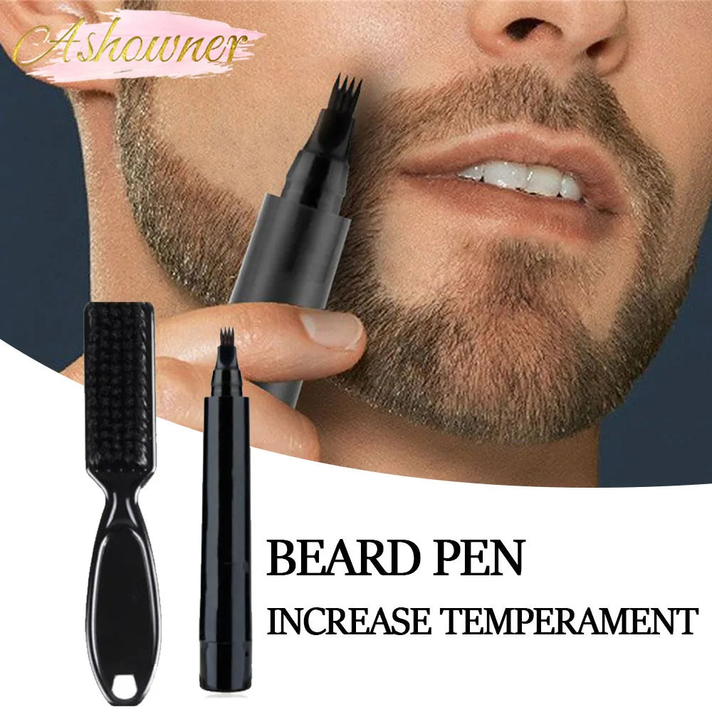 Waterproof Beard Pen Beard Filler Pencil And Brush Beard Enhancer Lasting Repair Moustache Coloring Shaping Tools Hair Pencil